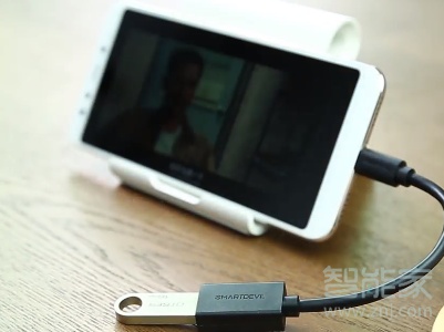 2、接着把U盘插入OTG线的一端,注意是大头可以插入U盘的那一端。