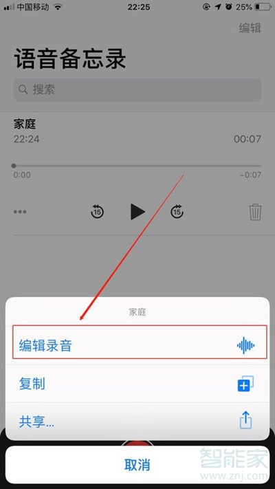 3、点击之后会弹出三个选项,选择第一个选项“编辑录音”。
