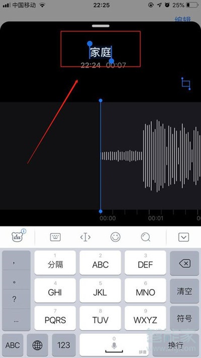 4、进入到录音编辑页面,点击上方“家族”后会弹出输入法。