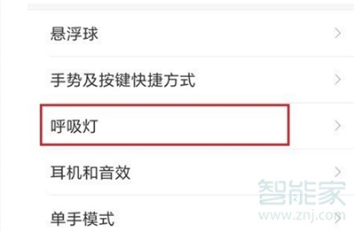 3、进入更多设置后,在中部位置可以看到【呼吸灯】一项,点击进入设置: