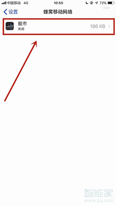 4、在【蜂窝移动网络】的应用程序列表中选择想要进行【网络设置】的应用程序。
