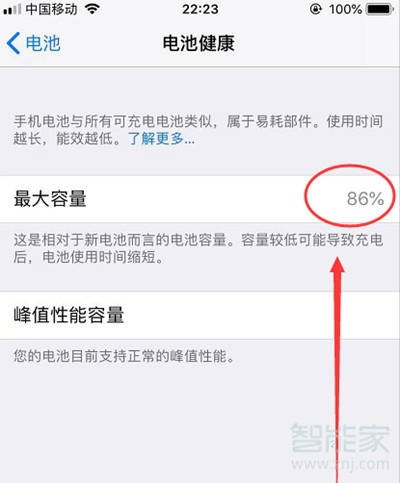 4、然后在电池健康页面里可以看到显示电池的 最大容量 百分比,如下你的电池低于80%,那么就可以考虑换电池啦