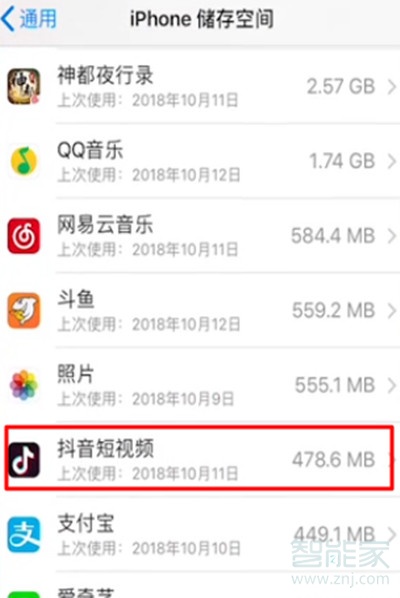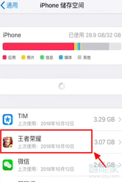 3、然后进入以后,点击iphone储存空间进入。