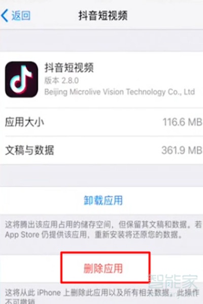 6、然后进入以后,点击其底部的删除应用,然后删除应用里面的缓存数据即可清理内存。