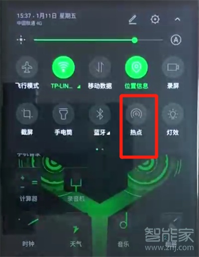 ️方法二:下拉控制中心,点亮热点图标,同样可以开启热点
