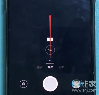 2、进入拍照界面之后,从箭头标志的位置向上滑动,直到出来更多功能选项。