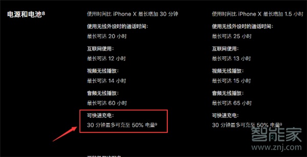 苹果官方页面显示,iPhone XS、iPhone XS Max以及iPhone XR均支持快速充电功能,可让手机在30分钟内充至50%电量。