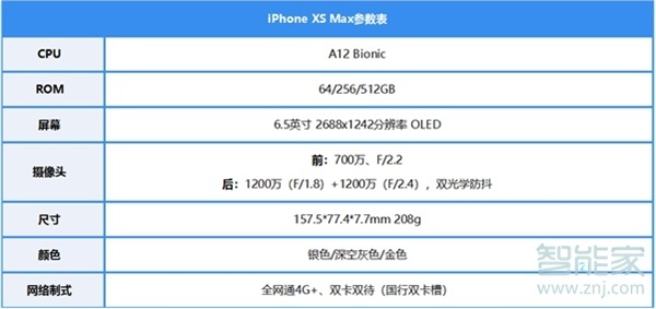 iPhone XS Max拥有6.5英寸2688*1242分辨率OLED屏,新一代神经网络引擎的A12仿生处理器,前置700万像素摄像头,光圈f/2.2,后置双1200万像素摄像头,光圈为f/1.8(广角)+f/2.4(长焦),3174mAh电池容量,IP68等级防水防尘防溅。
