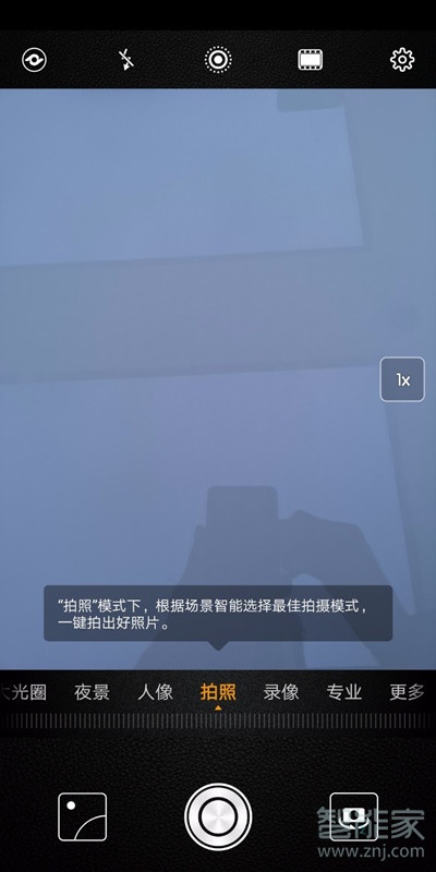 1、首先在主屏页面打开相机。看到底部这里有很多按钮,依次是:大光圈、夜景、人像、拍照、录像、专业、更多。