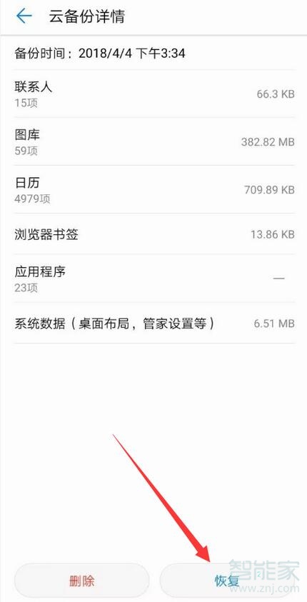 备份完成后,新的备份记录会出现在“备份记录”中,点击备份记录可以选择需要恢复到手机的数据,也可以将全部备份数据导入手机,这样就不怕删除数据了或换新手机了。