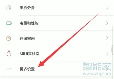 2、设置菜单中项目较多需要向下拖拽查找,向下一直找到【更多设置】,点击进入。
