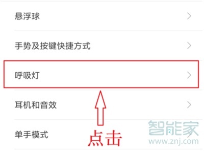3、进入更多设置后,在中部位置可以看到【呼吸灯】一项,点击进入设置。
