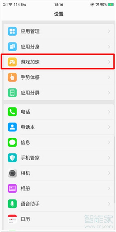 1.在手机桌面,找到【设置】图标并点击打开,接着往下滑找到【游戏加速】选项,点击进入。