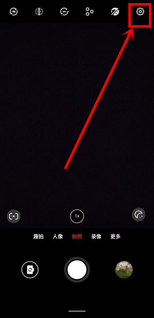 2.点击相机界面右上角的齿轮图标,进入相机设置菜单。