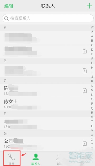 第二步,点开联系人的图标后点击左下角的拨号按钮。