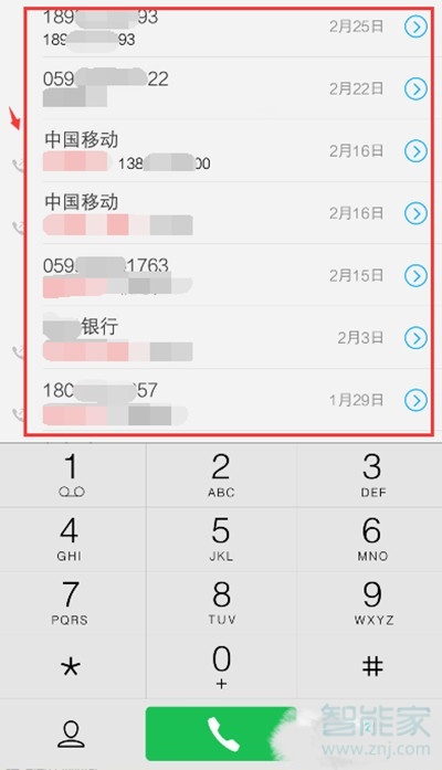 第三步,点到拨号按钮后,在下图红框里面往下滑。