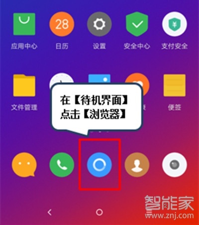 1、在【待机界面】点击【浏览器】,进入浏览器界面。
