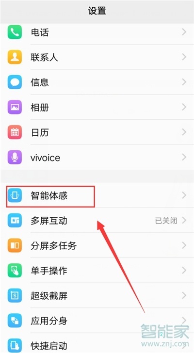 2.进入【设置】,下拉找到【智能体感】并点击进入。