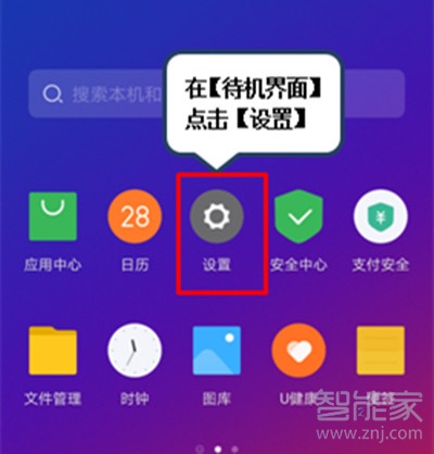 1、在【待机界面】点击【设置】。