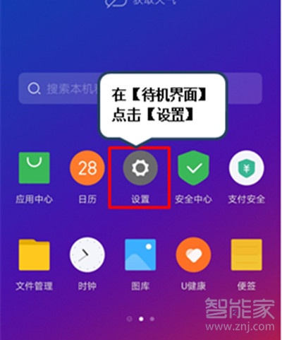 1、在【待机界面】点击【设置】。