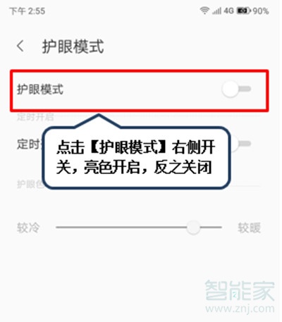 3、点击【护眼模式】,再点击【护眼模式】右侧开关,亮色开启,反之关闭。
