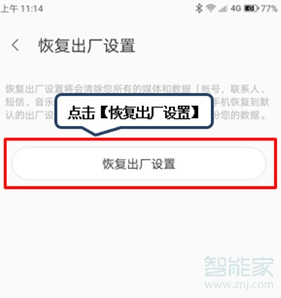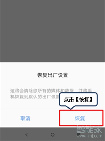 5、点击【恢复】,手机进行恢复出厂设置操作。
