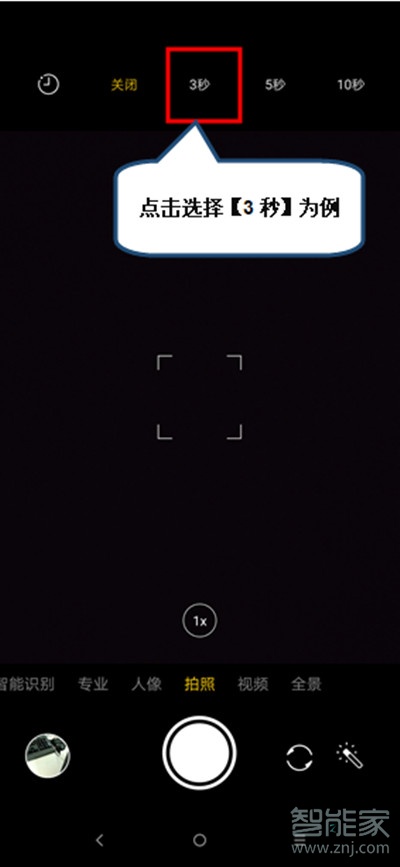 3、在屏幕上方会显示“关闭”、“3秒”、“5秒”、“10秒”,点击选择【3秒】为例。