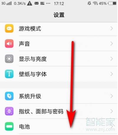 2.设置里面之后,一直往下滑动屏幕。