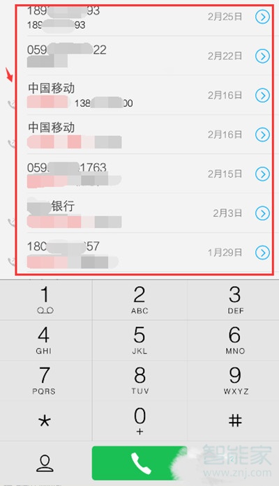 第三步,点到拨号按钮后,在下图红框里面往下滑。