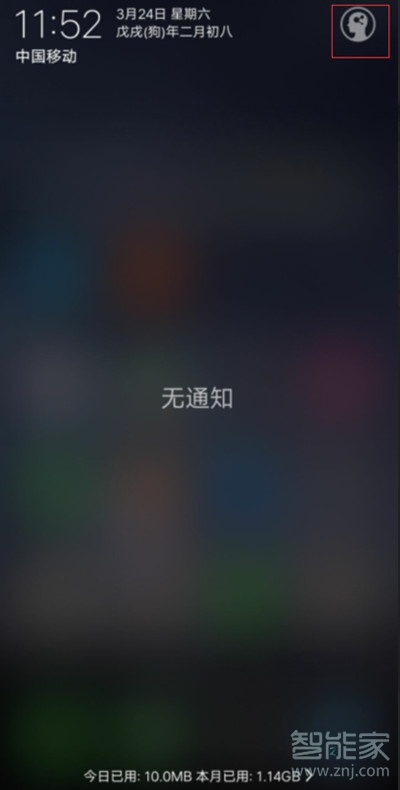 1.从电话屏幕顶部打开通知栏,然后单击人像图标。