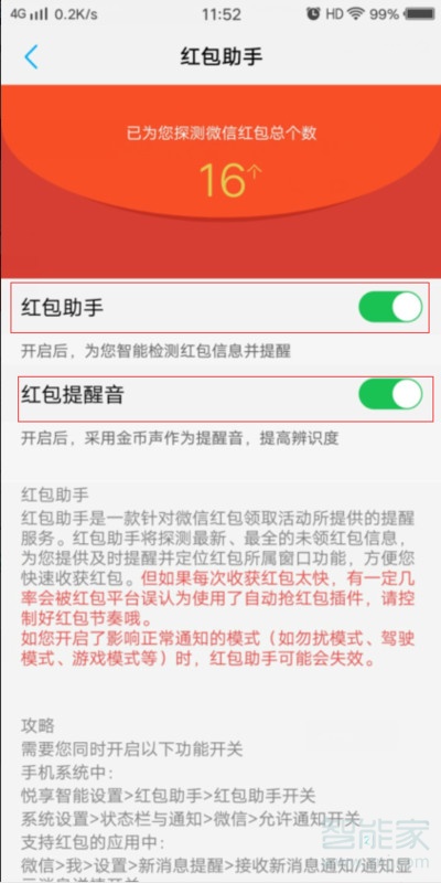 2.点击“设置”-“打开通知”-“红包助手”-“开启红包助手和红包提醒音”。