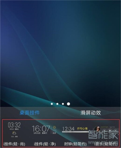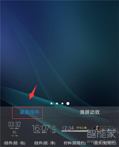1.在主屏桌面任意空白处长按桌面,底部会弹出一个状态栏,这里面会有许许多多的小挂件。