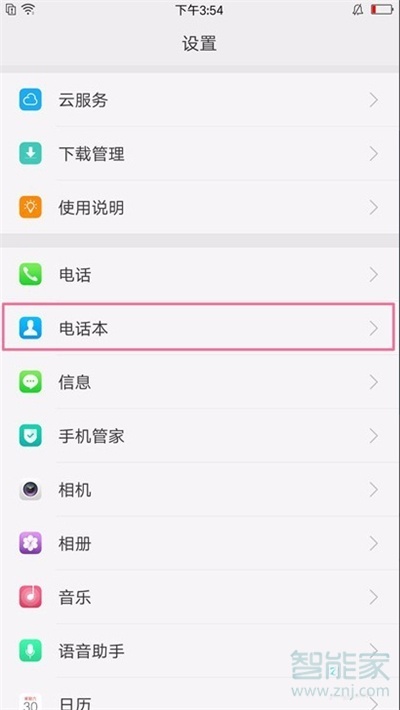 2.在设置里面找到【电话本】选项。