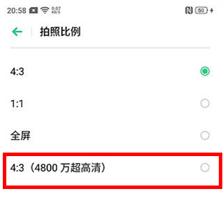 4.点击最后一项【4800万超高清】右边的选择按钮。