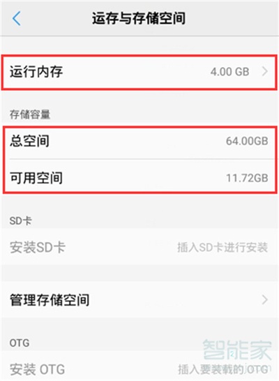 3.打开之后,我们可以看到运行内存、储存容量的总空间和可用空间,并且可用管理储存空间。