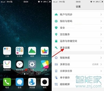 1、首先在vivoy3系统主界面中找到并依次进入【设置】--【更多设置】,点击进入,如下图所示。