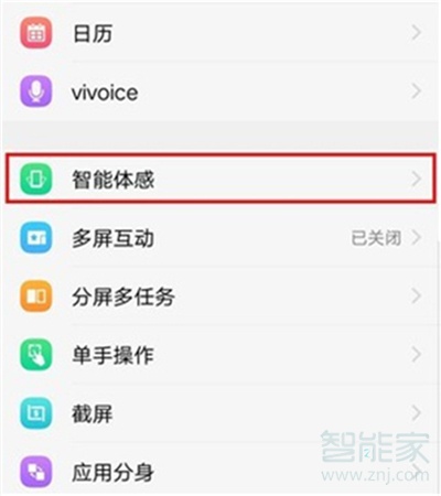 2.进入设置界面之后,找到【智能体感】功能选项,点击打开;