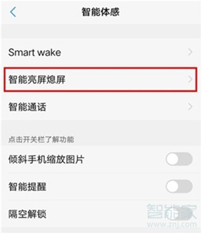 3.在智能体感的界面再接着点击【智能亮屏熄屏】选项;
