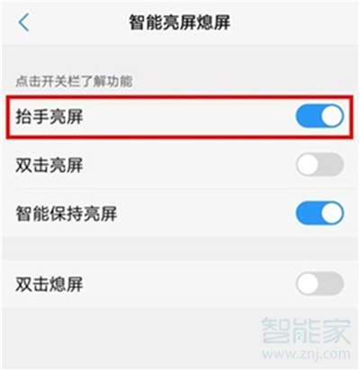 4.接着点击【抬手亮屏】右边的开关,将它开启即可,开启之后按钮呈蓝色。