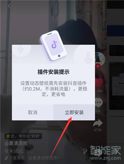 3.没安装插件的朋友,会提示插件安装的对话框,点击【立即安装】即可,本次安装不消耗流量,可以使动态壁纸更稳定。