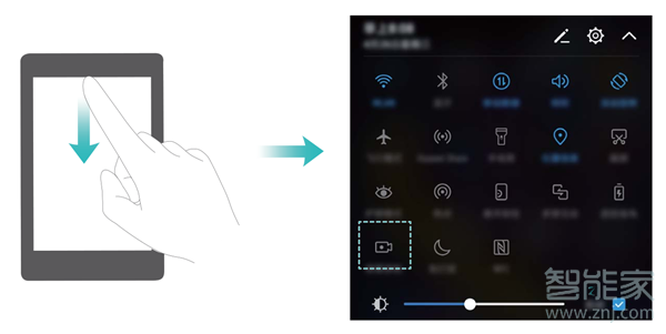 从状态栏处向下滑动,打开通知面板,找到录屏图标,点击启动录屏。这事我们可以看到左上角有一个录屏按钮,如需结束录屏,点击屏幕左上角的录屏按钮即可结束。