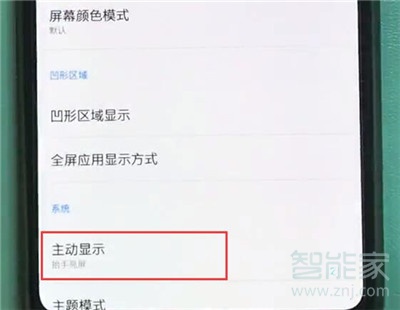 3、进入显示选项之后,下拉屏幕找到【主动显示】选项,点击进入。