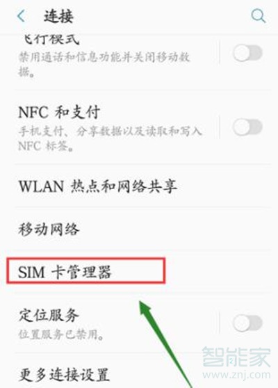 3、在连接界面下拉页面,我们找到sim卡管理器,如下图所示,