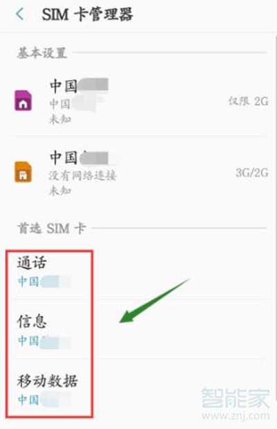 4、进入sim管理器界面我们初次使用时可以发现有三个选项,分别是通话,信息和数据,如下图所示,