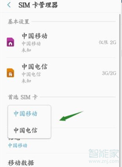 6、同上面的补助,我们可以设置信息的运营商,最后还可以设置移动数据的运营商。移动数据的运营商可以选择关闭,如下图所示