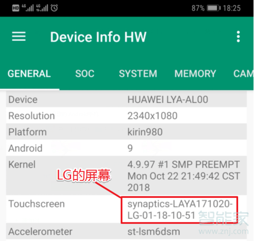5、打开应用后,我们查看Touch screen这个选项,如果显示的有LG的标志说明手机使用的是LG的屏幕,