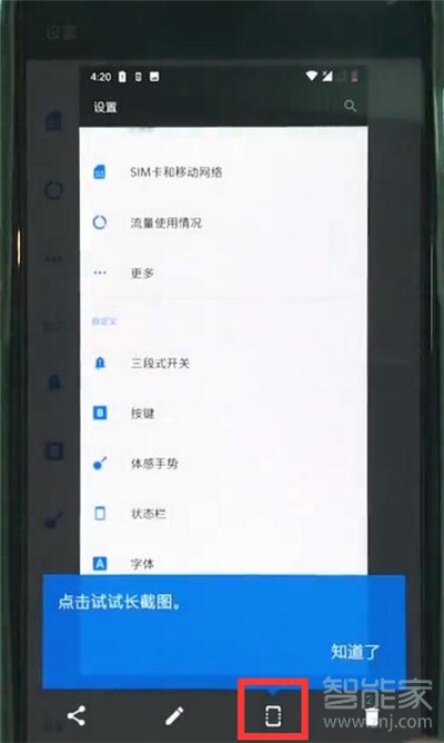 1、同时按下电源键和音量键进入截图界面。
