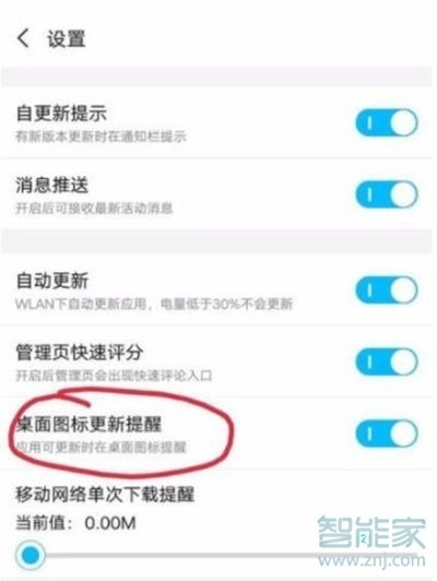 3,桌面图标更新提醒这个关闭即可,关闭后再有应用可以更新时将不会在桌面上显示提醒了