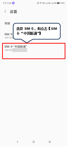 3、选择SIM卡,如点击【SIM卡“中国联通”】。