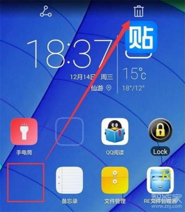 第二种方法:双指在屏幕上捏合,就会进入图标的编辑模式,依旧长按图标拖到上方垃圾桶就会删除。